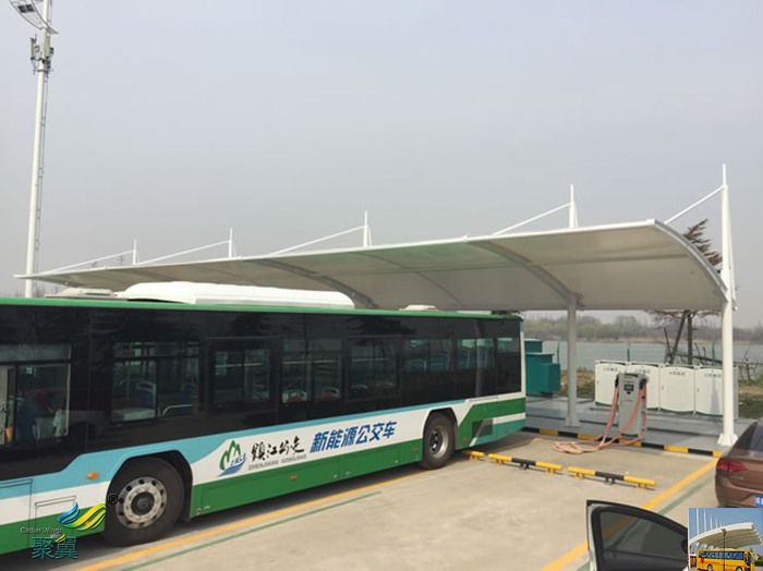 大巴定制汽車停車棚不同于混凝土建筑,膜結構易于安裝,混凝土建筑過于笨重,不適合在有限的面積上做造型,而膜結構輕便,可以塑造成各種形狀,不光具有停車棚的功能性有點,也有城市景觀的藝術性優點。