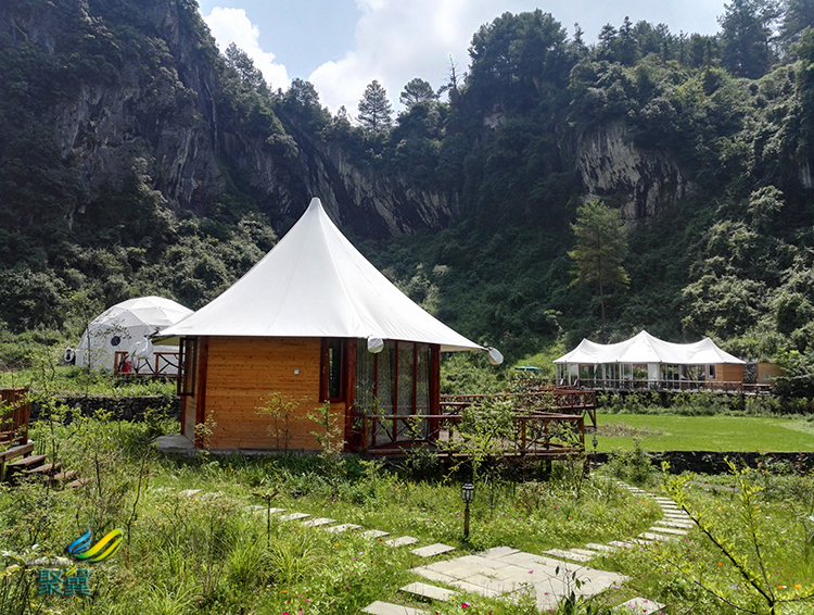 根據客人的這些需要選擇適宜的地方搭建更具西方風味,更具野營風味的膜結構帳篷酒店。